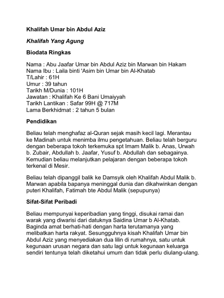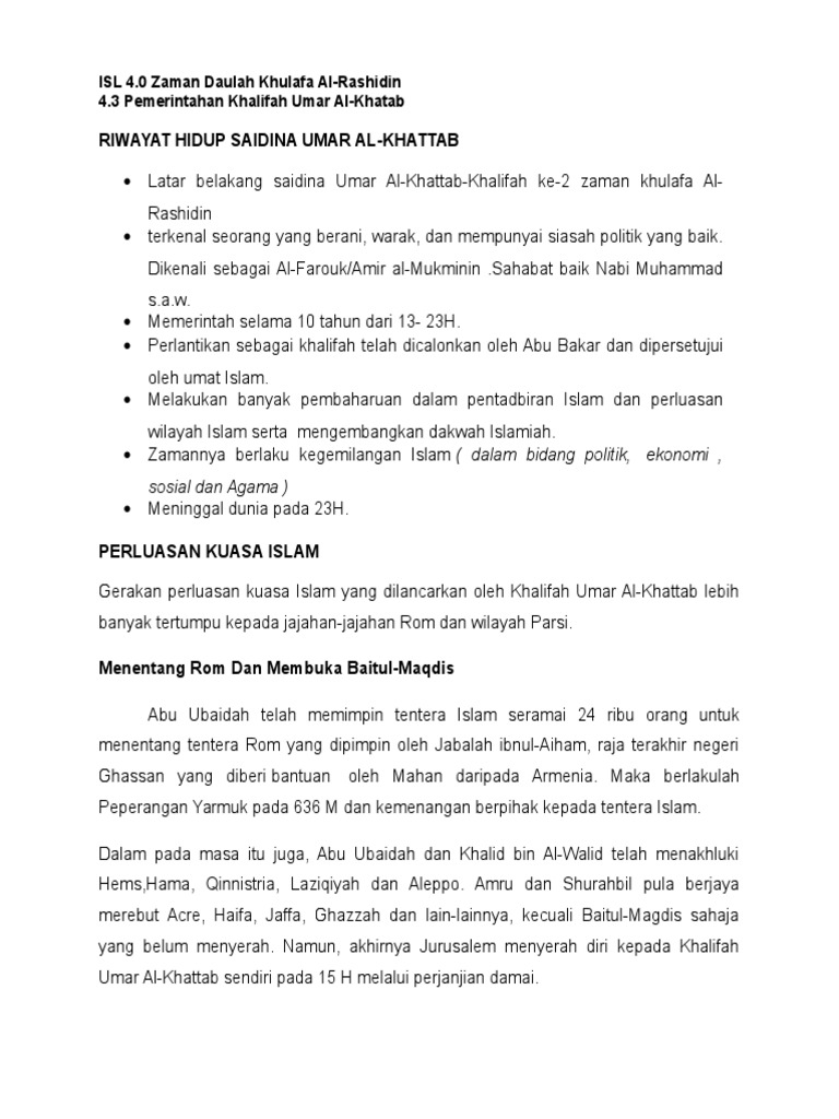 Sejarah Sem 2 Terangkan Latar Belakang Saidina Umar Dan Sumbangannya