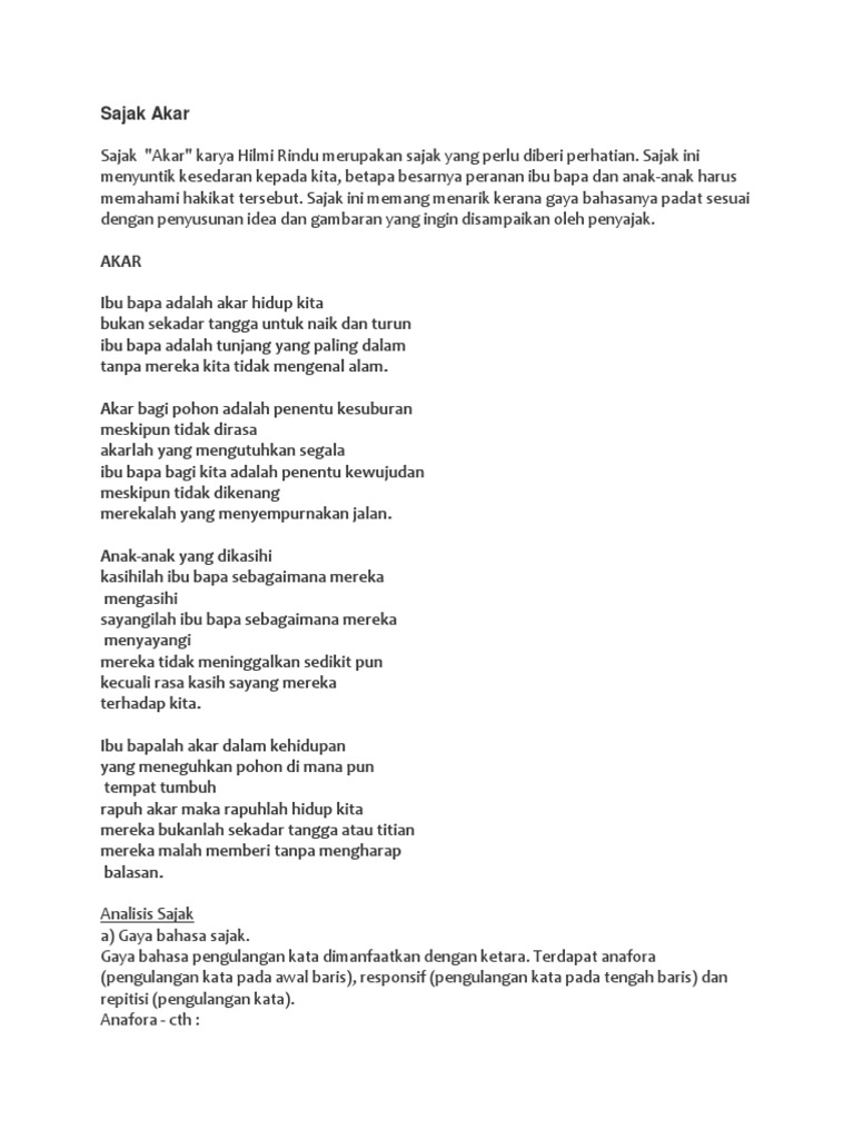 Doc Sejarah Dan Perkembangan Sajak Docx Linda Rajun Academia Edu