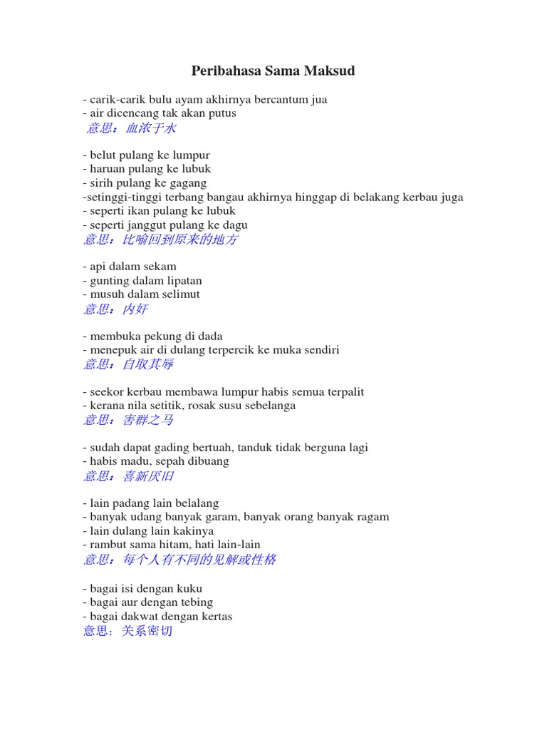 Berikut Adalah Antara Peribahasa Yang Mempunyai Maksud Yang Sama Atau Hampir Sama