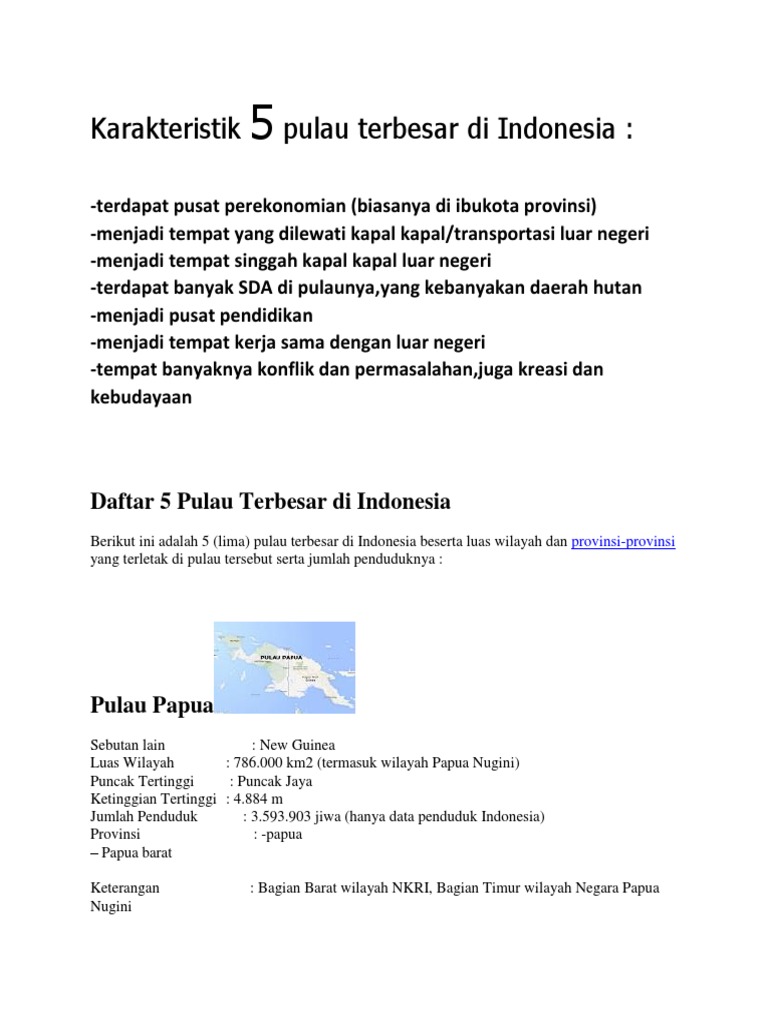 Karakteristik 5 Pulau Terbesar Di Indonesia