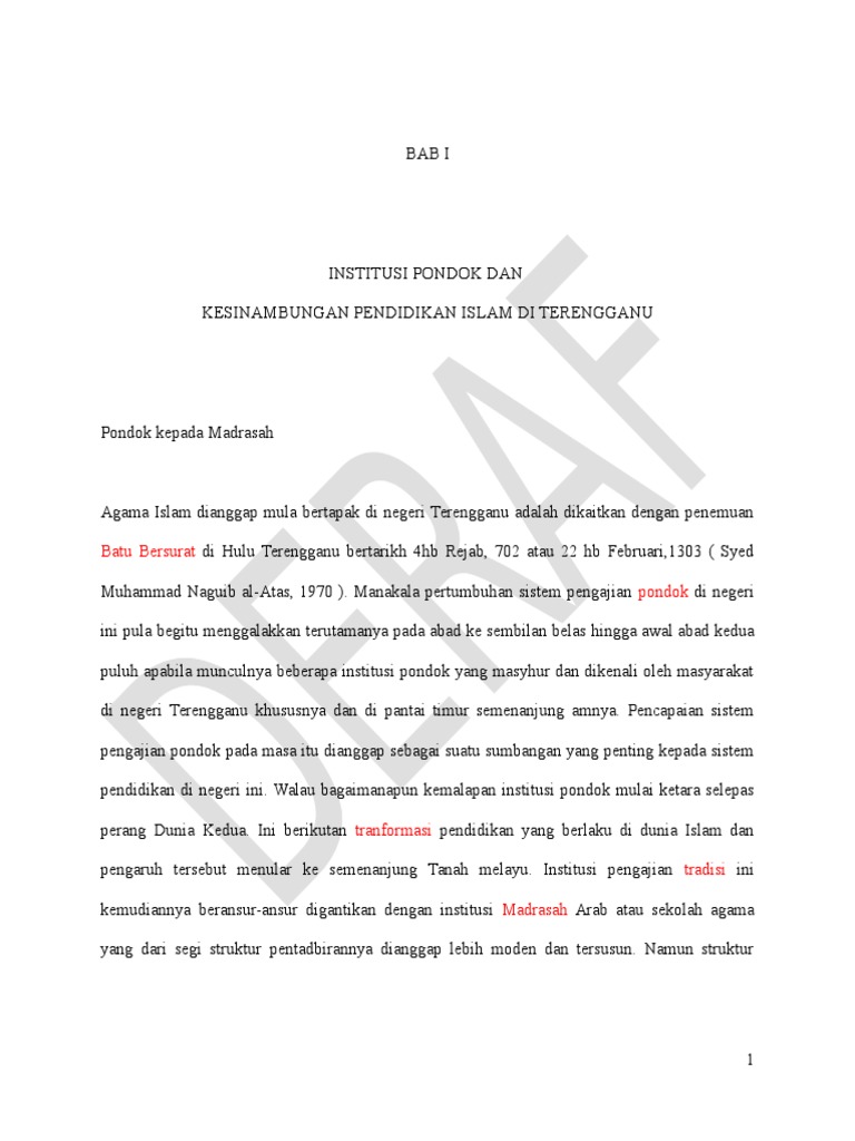 Bab I Institusi Pondok Dan Kesinambungan Pendidikan Di Terengganu