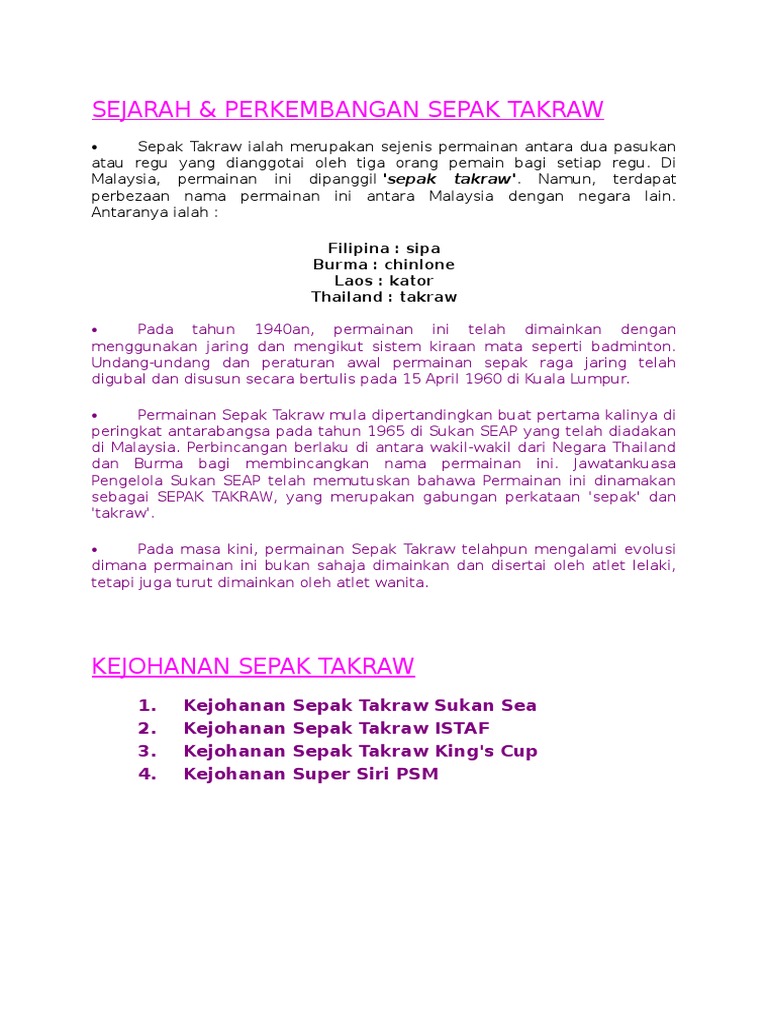 Doc Asal Usul Sepak Takraw Noraini Bain Academia Edu