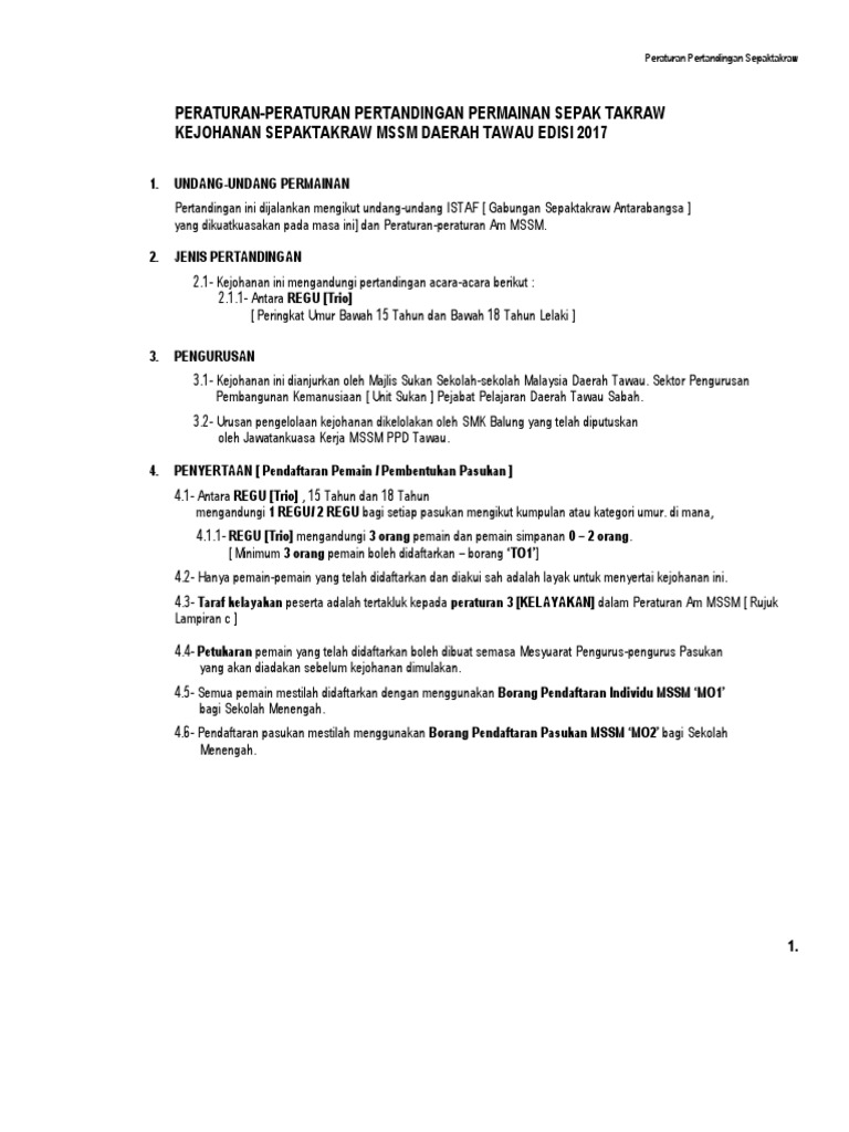Peraturan Pertandingan Sepaktakraw Mssdt Docx
