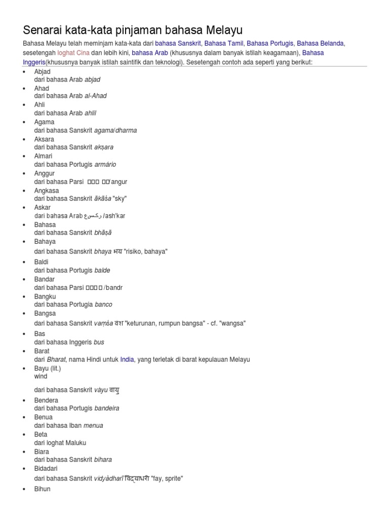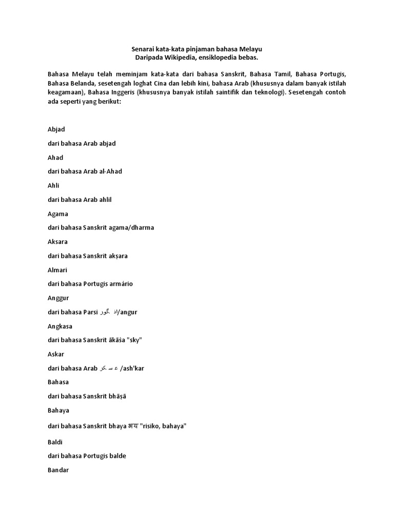 Senarai Kata Kata Pinjaman Bahasa Melayu
