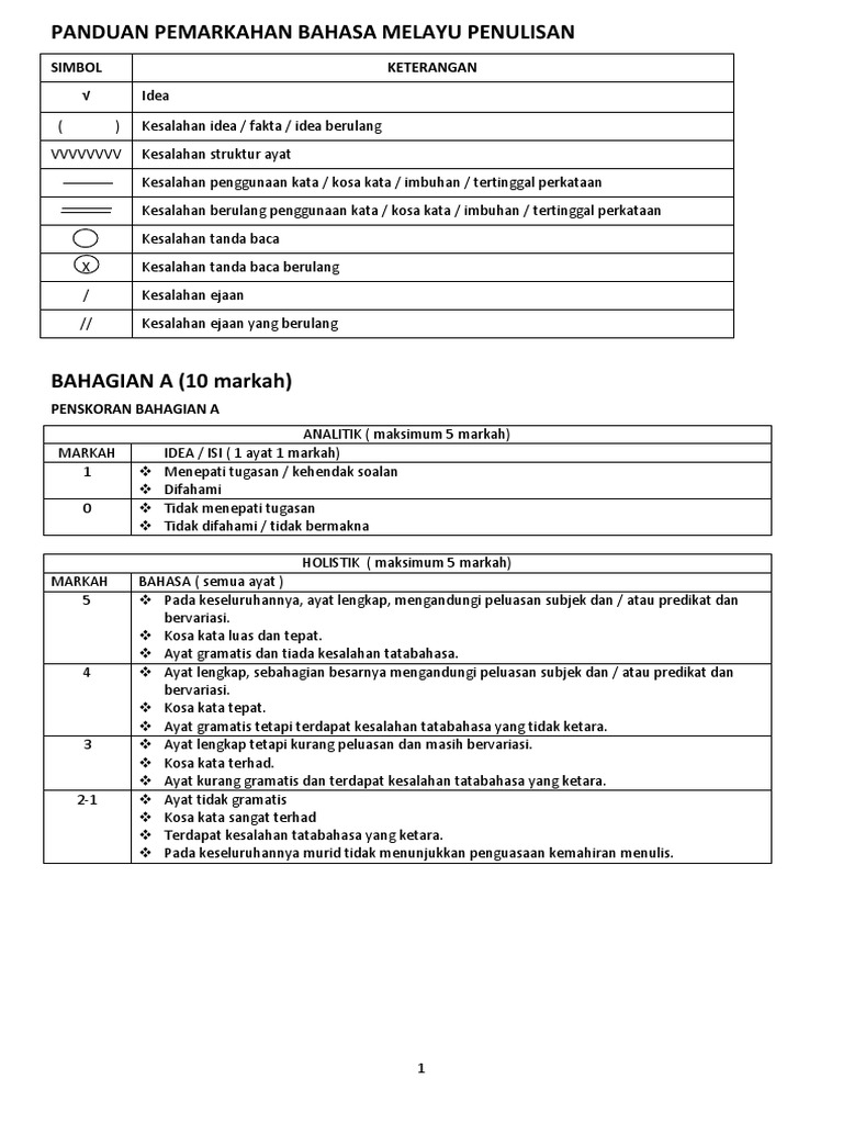 Panduan Pemarkahan Bahasa Melayu Penulisan Simbol Keterangan