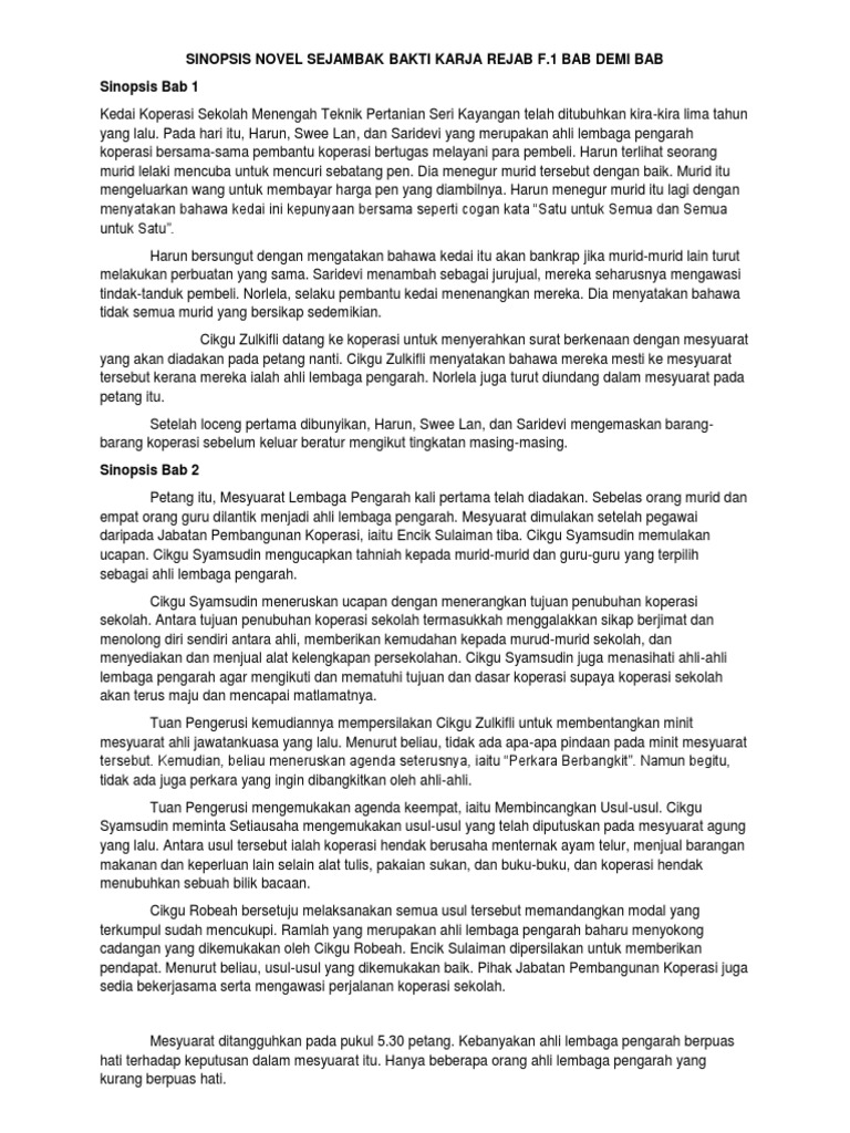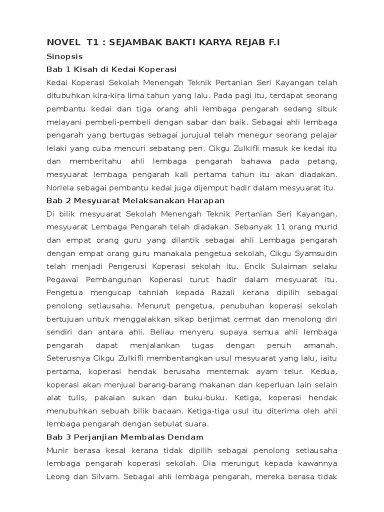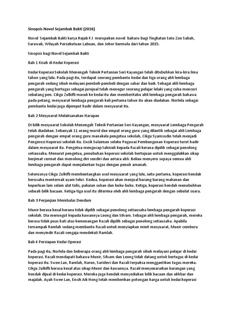 Sinopsis Novel Sejambak Bakti Docx