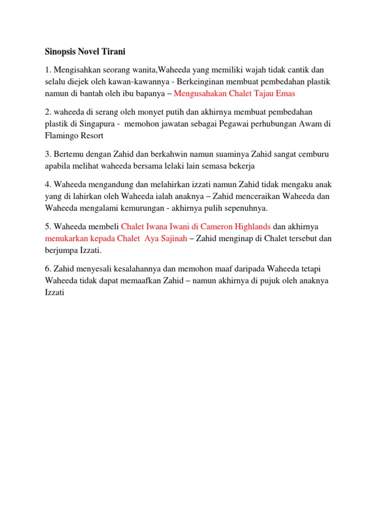 Sinopsis Novel Tirani