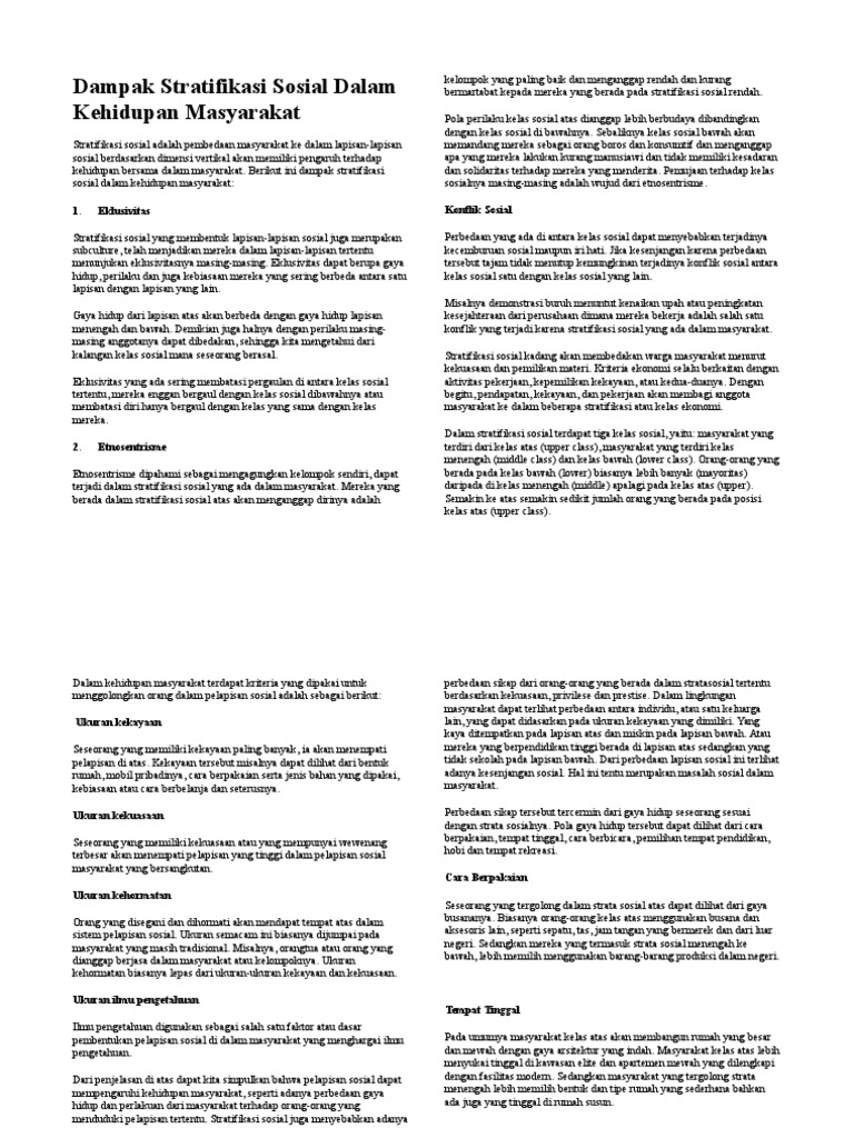 Dampak Stratifikasi Sosial Dalam Kehidupan Doc