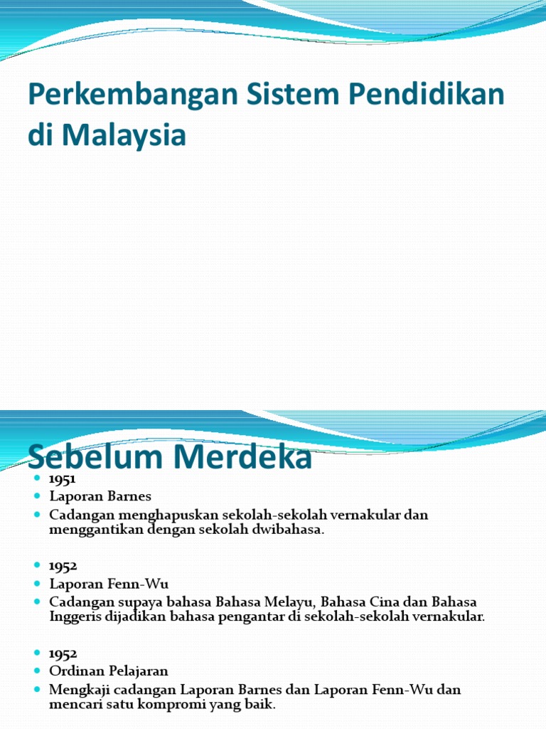 Perkembangan Sistem Pendidikan Sebelum Dan Selepas Merdeka Perkembangan Sistem Pendidikan Sebelum Dan Selepas Merdeka Di Malaysia