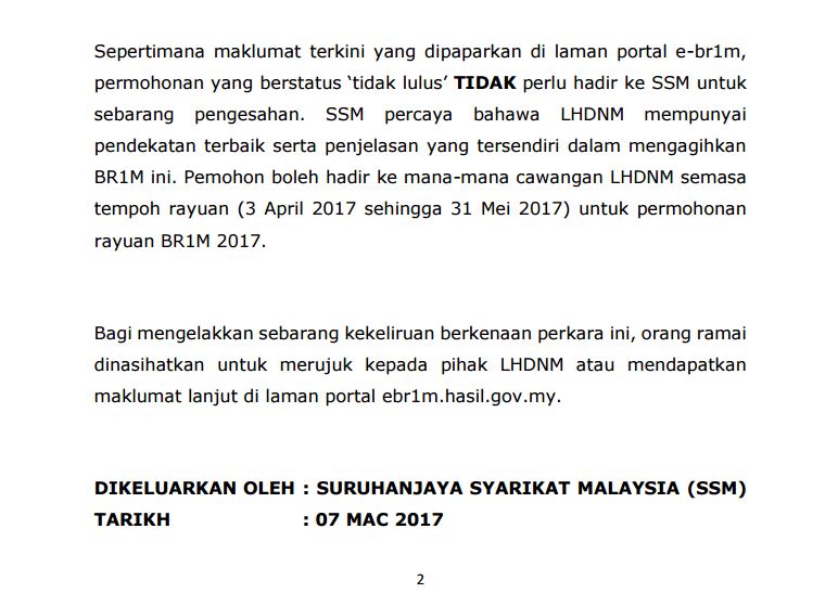 Bicara Perjuangan Kenyataan Ssm Dan Kementerian Kewangan Tentang Status Kelayakan Br1m2017