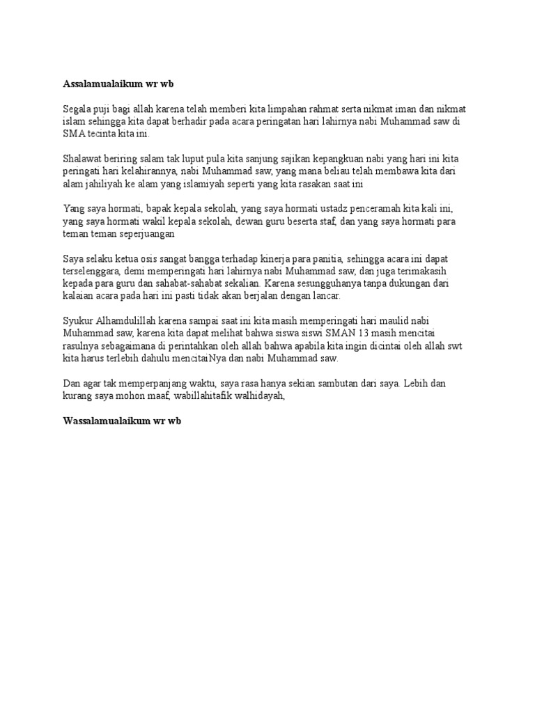 Doc Pidato Singkat Peringatan Maulid Nabi Muhammad Saw Daurulang Daur Academia Edu