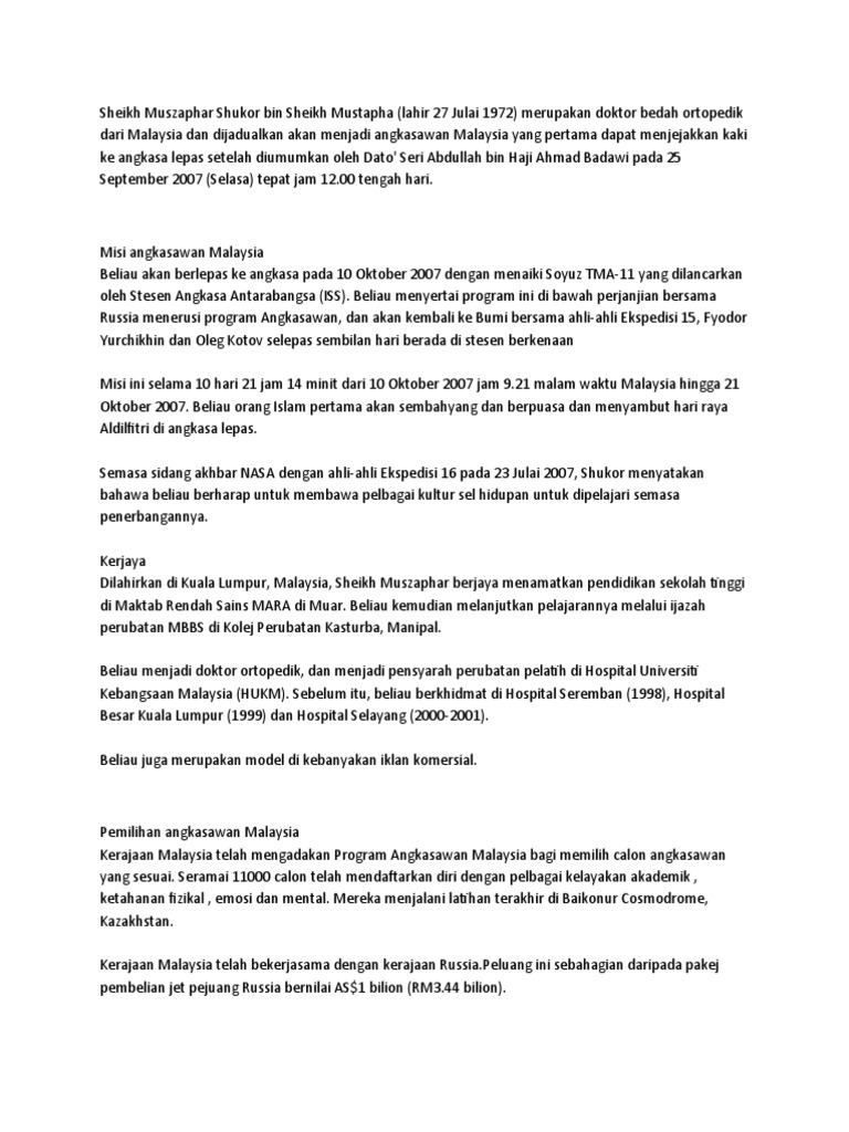 Biodata Dr Sheikh Muszaphar Shukor Angkasawan Negara Malaysia Jiwarosak Com
