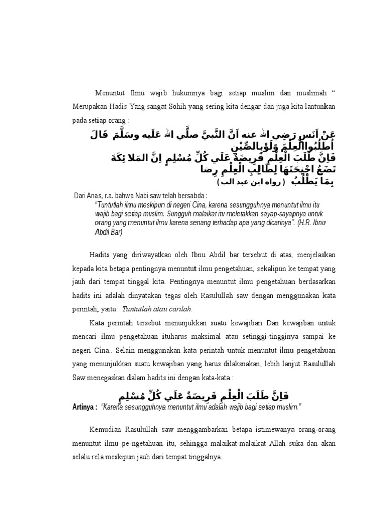 Apa Bahasa Arabnya Tuntutlah Ilmu Walau Sampai Ke Negri Cina Brainly Co Id
