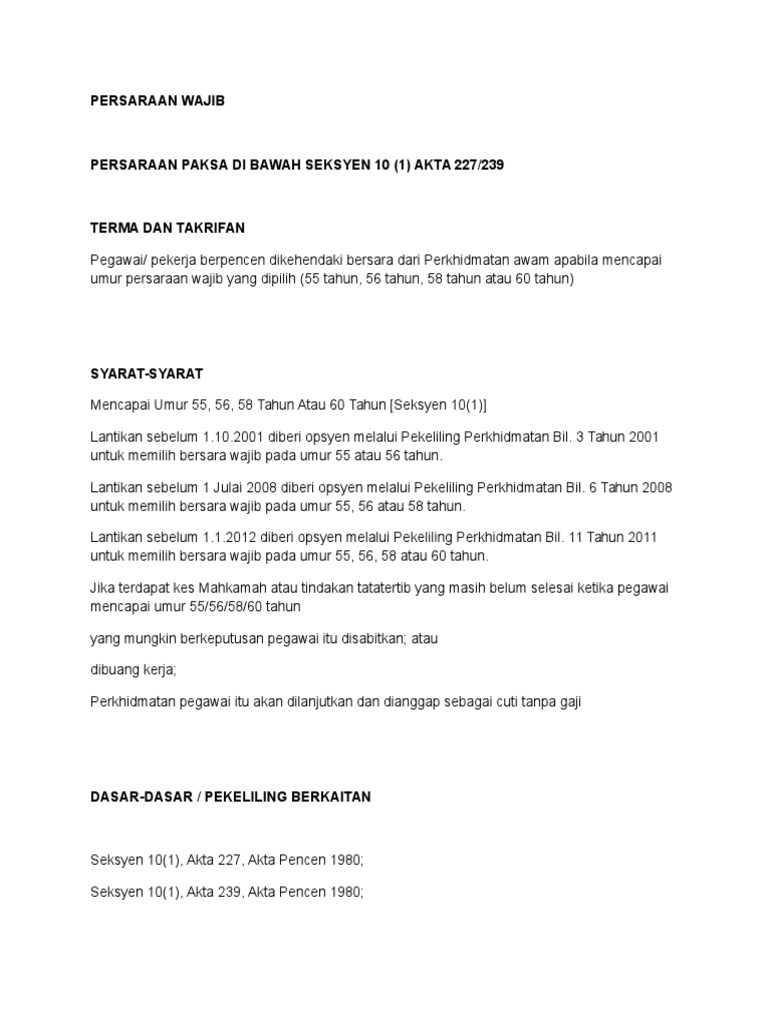 Umur Persaraan Wajib Bagi Penjawat Awam Bahagian Pasca Perkhidmatan Pencen Facebook