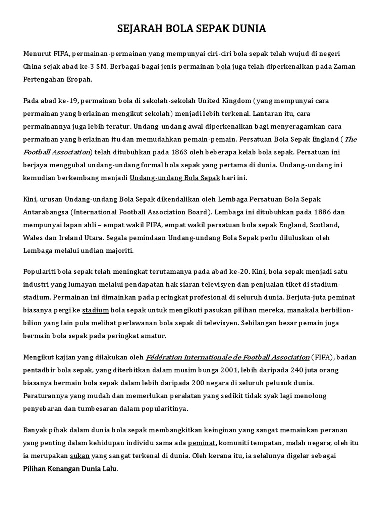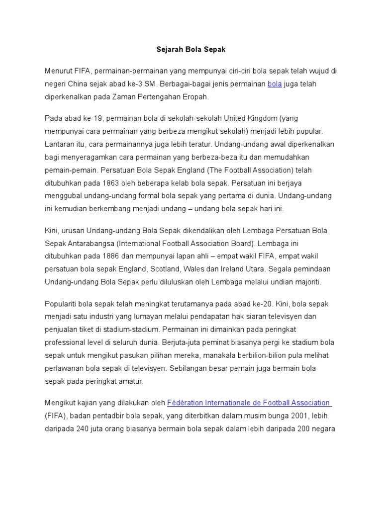Sejarah Bola Sepak