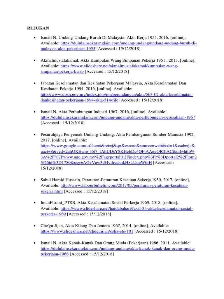 Undang Undang Buruh Malaysia Senarai Artikel Yang Telah Diterbitkan