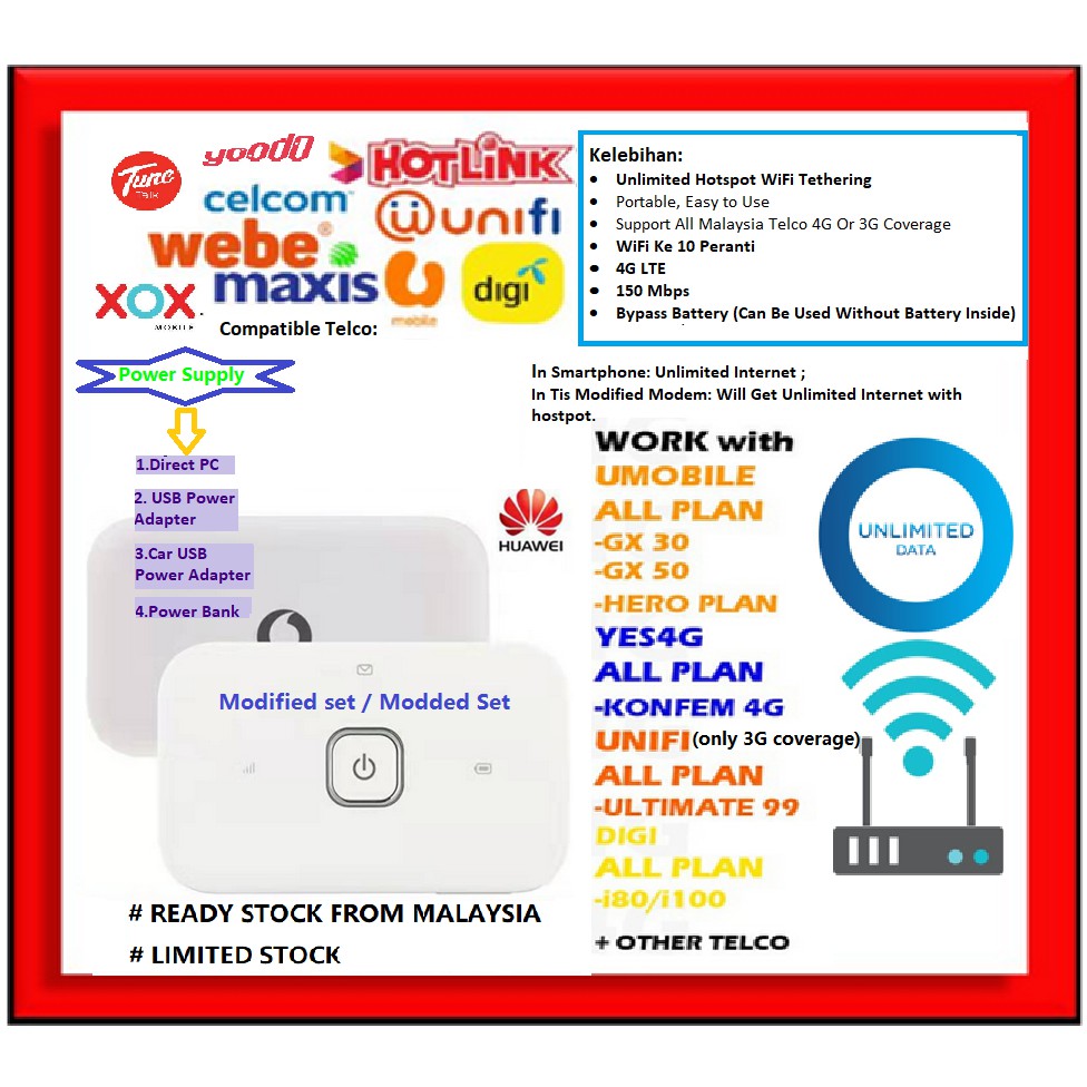 Modded Mod Unlocked Huawei B310 4g Maxis Digi Celcom Yes4g Umobile Unlimited Wifi Tethering Hotspot Router Modem Shopee Malaysia
