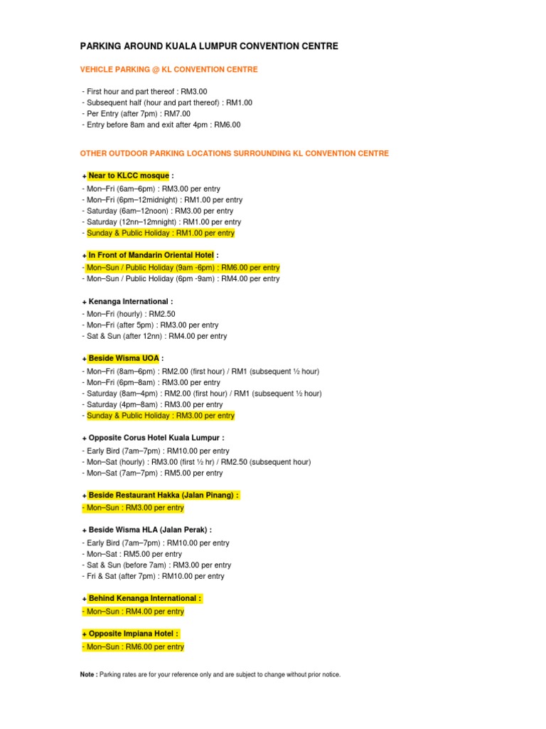 Parking Rates Around Kl Convention Centre Nature