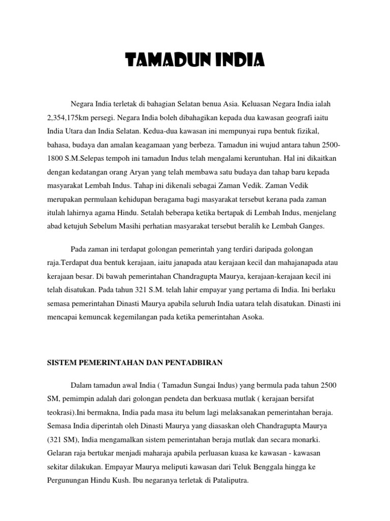 Tamadun India Kelahiran Perkembangan Dan Sumbangannya Pdf Document